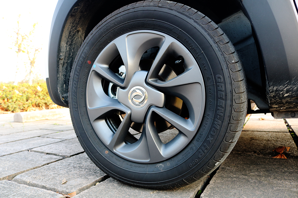 纳米BOX作为小型车,配备的是14寸轮毂,与之搭配的则是165/70 R14的玲珑轮胎,虽然轮胎小,但是在城市里作为通勤代步来说,还是足够了。