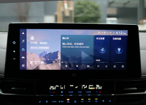 广汽丰田的仪表盘(所试驾车型为高配版)采用全液晶仪表设计,尺寸为12.3英寸,色彩上以黑色和蓝色为基调,内容上提供了导航、传统、精简3种模式,显示信息还算丰富。