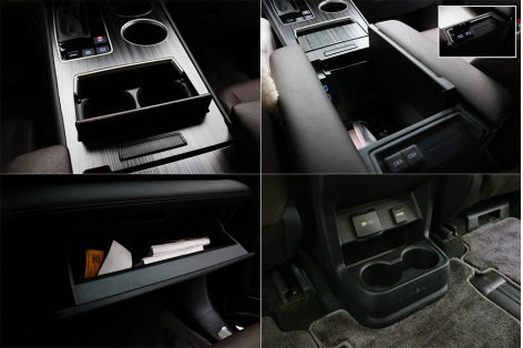 一直以来,丰田对于空间的利用率都颇有口碑,此次的广汽丰田赛那也延续了这一传统,除了常规的中控台储物格、扶手箱以外,就连门板都做出了三层的储物。可以说随手能碰到之处都有储物空间。并且,赛那的车内有着非常丰富的电源接口,无论你在哪一排,都能够找到合适你位置的电源接口。