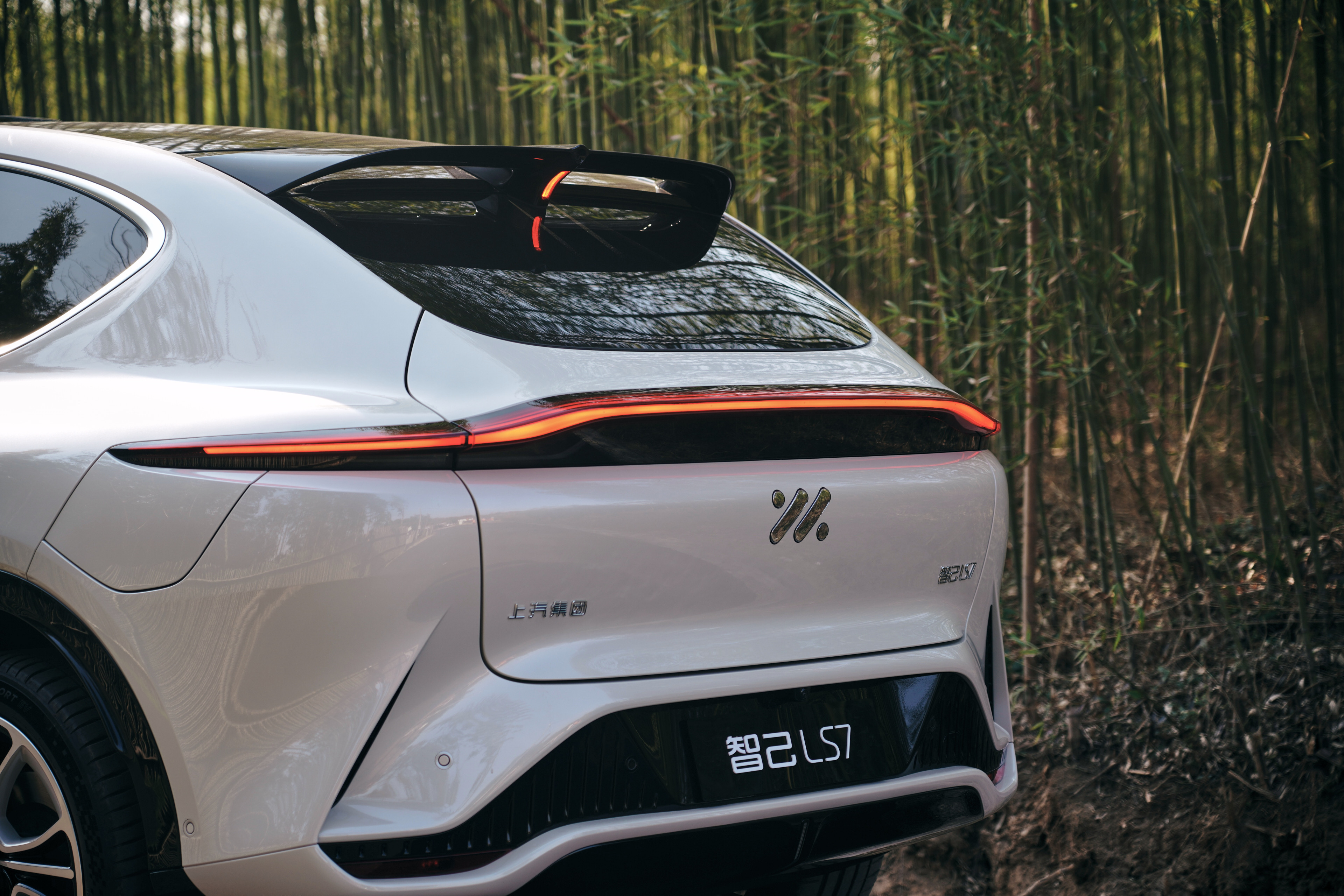 外观设计方面,智己LS7基本延续了概念车的设计,车头设计较为圆润,前脸使用封闭式设计,左右两侧则为L形大灯,内部配备了LED灯眉。同时,前包围三组通风开口设计,两侧的开口中配有LED日间行车灯,整体造型十分精致。车身侧面线条流畅顺滑,车身整体没有使用过多明显的筋线。尾部则是采用了贯穿式尾灯组,巨大的车顶扰流板配合造型夸张的后包围,看上去运动气息十足。此外,智己LS7还配备高位刹车灯以及底部亮黑色后包围,更是凸显运动氛围,整体看起来很有豪华高端车的气质。