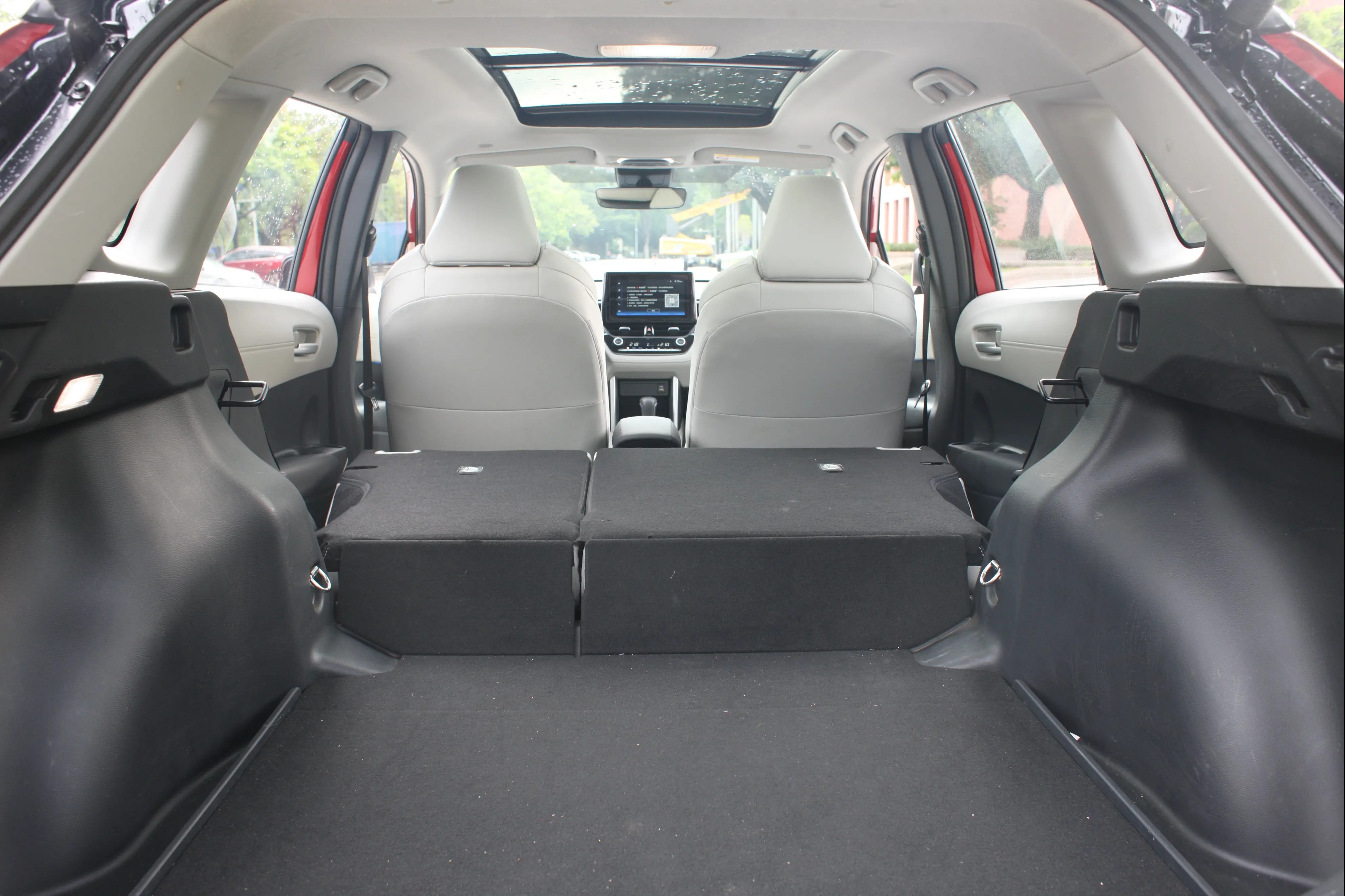 回来说车内,编辑部小伙伴们一致称赞锋兰达的空间表现,尤其是后备厢和后排空间都有惊喜。锋兰达的长宽高分别为4485/1825/1620mm,轴距达到了2640mm,得益于同级领先的车身尺寸优势,锋兰达后备厢容积达到了438L,实测可轻松装下4个22寸和2个24寸行李箱,要是放倒后排座椅(支持4/6分割放倒),就能进一步提升车辆的置物能力,感觉搬个家都没什么压力。二排空间体验尤其值得一说,第一是二排纵向空间实测达到980mm,是同级最大,搭配全景天窗,二排乘客一点不觉得压抑,更重要的是锋兰达二排座椅还支持最大6°的角度调节,舒适感进一步得到提升。