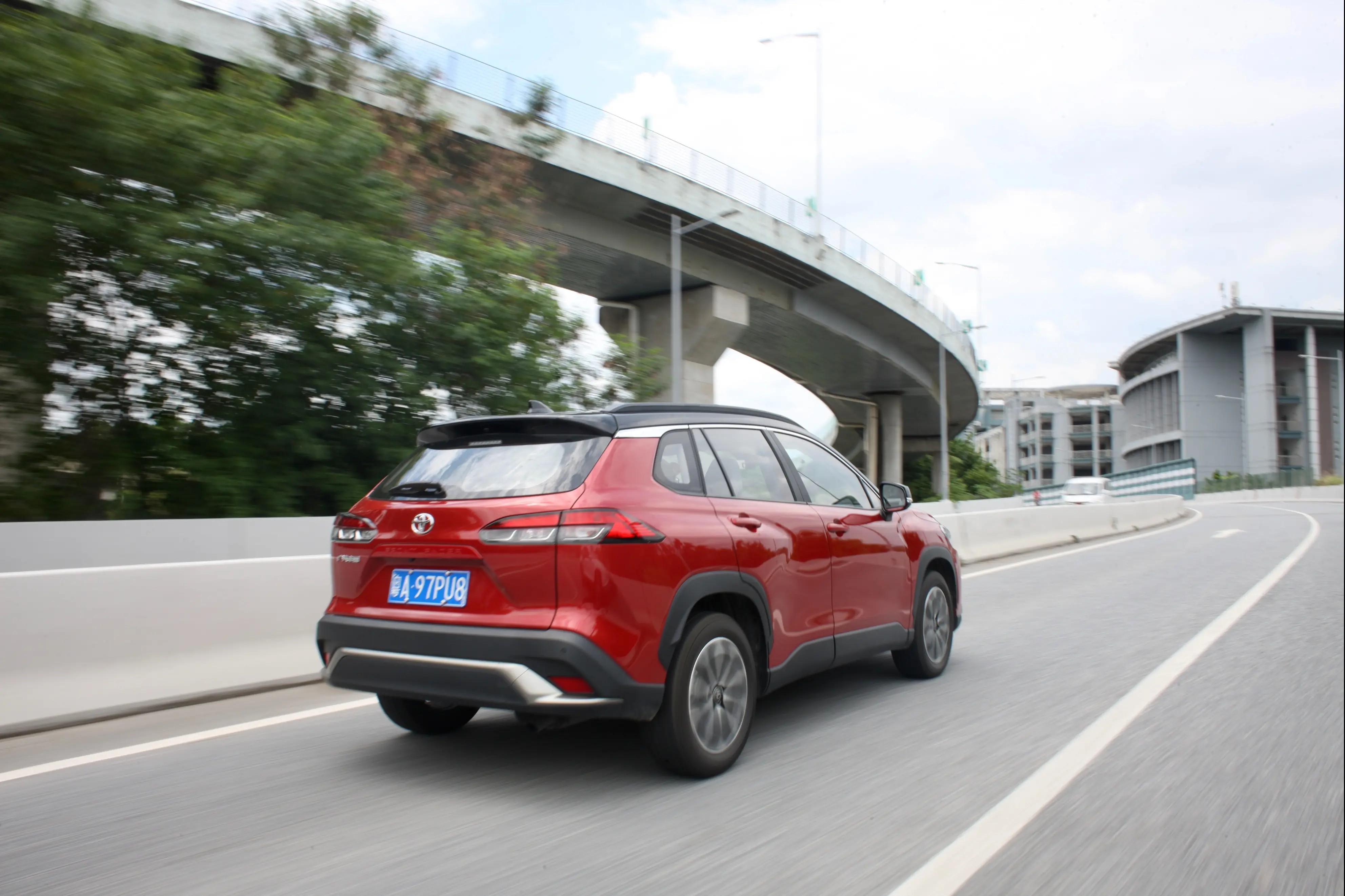 再来是底盘,我们试驾锋兰达的时间越长,就越能体验到新车的灵活和扎实。灵活主要体现在锋兰达的转弯半径超级小,只有5.2m,而逍客是5.45m,,XR-V和探歌都大于等于5.5m,锋兰达的灵活优势在城市里调头的时候体现的尤其明显,窄路调头很快搞定,不用像转弯半径太大的车需要反复腾挪。扎实主要体现在过弯的时候,可以感觉到锋兰达侧倾非常小,开车的人因为这个车辆反馈也会更有信心。这就要提到锋兰达的TNGA-C平台,延续了丰田TNGA系列架构低重心,高刚性特征。编辑部的年轻人还特别为锋兰达的造型点赞,认为其梯形的进气格栅配合熏黑设计,悬浮式LED组合尾灯, 18英寸双色铝合金轮毂,还有双色车身都帮助其增加了运动感。综上来看,我们认为锋兰达的运动感做到了表里如一,相信这是它成为爆款的第二个理由。