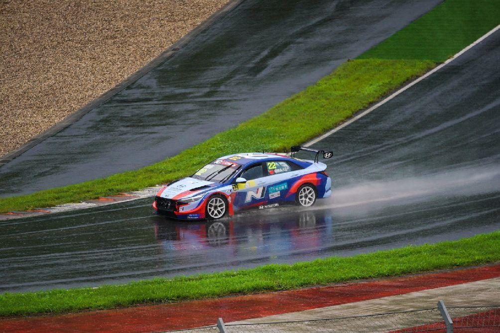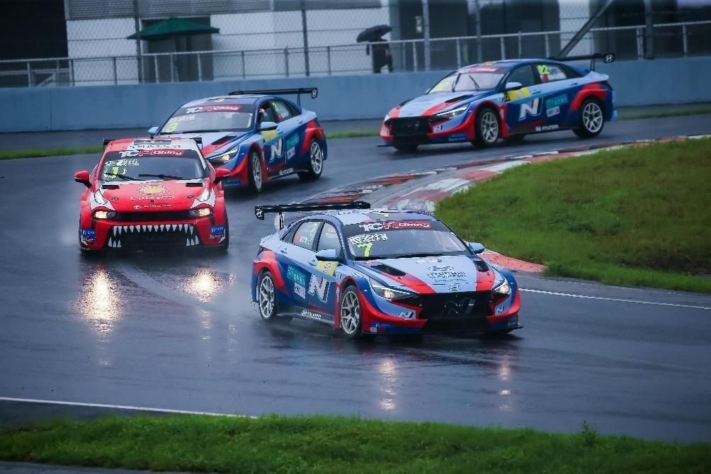 本次比赛中,持续不断的大雨让本就激烈的比赛更加充满变数。当天,现代汽车N品牌的Hyundai N和Z.Speed N两支车队克服大雨及多弯积水等众多不利因素,驾驶Elantra N TCR赛车上演了一场精彩的雨中狂飙盛宴。上午首轮比赛中,Z.Speed N车队的张臻东凭借个人稳定发挥和Elantra N TCR赛车的卓越实力,拿下第一回合的季军。下午在第二回合中,Hyundai N车队的曹宏炜、甄卓伟、何晓乐3位车手火力全开。发车之后,曹宏炜一直保持冲击之势,面对对手的疯狂追赶和场内红旗等不利因素,依靠团队配合和Elantra N TCR赛车的强劲表现,继首站之后N品牌再次将车手、车队、车型三料冠军奖杯收入囊中。