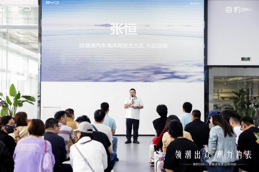 出发之前,比亚迪汽车海洋网浙北大区-大区经理张恒先生莅临致辞,表达了对本次试驾会的更多的期待,希望媒体嘉宾能通过本次活动深度挖掘产品亮点,感受新车的三大主流新价值(平台赋新、内饰革新、智能出新)和五大领先产品力(行业领先、同级、能效、豪华和安全领先)。