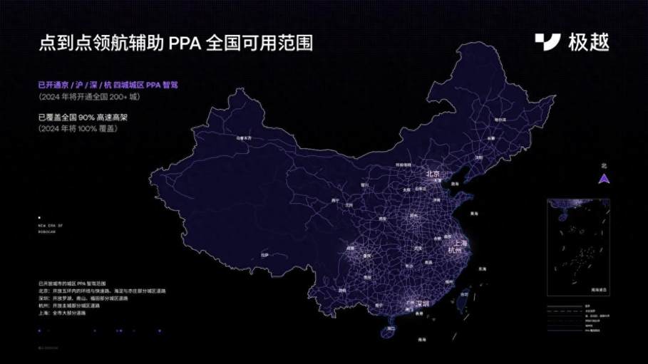 自12月29日起,随着北京、深圳、杭州城市PPA智驾功能的开通,用户可前往极越品牌体验中心预约试驾体验。上述城市的所有极越用户将于2024年1月19日起,逐步完成V1.3 版本软件的OTA升级,届时将能够在北京、杭州、深圳地区直接使用城市PPA智驾功能。本次PPA具体开通范围包括:北京海淀、亦庄区域城市道路,以及五环内环线与快速路,计划24年3月覆盖五环内地面道路;深圳罗湖、福田和南山区域的城市道路;杭州主城区城市道路。根据规划,2024年极越城市PPA智驾将逐步覆盖全国200+城市。