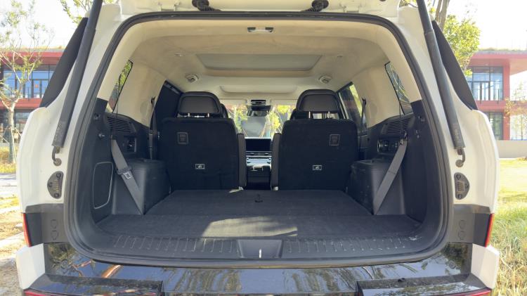 进入车内,第五代胜达的豪华内饰和舒适驾乘空间同样令人惊艳。内饰空间设计宽敞舒适,采用了高档材料和精致工艺,配备了双12.3英寸全景曲面屏和Nappa真皮座椅,提供了5/6/7座多种布局选择。第二排独立座椅设计提升了乘坐舒适度,第三排空间实用且适合长途出行。车内储物空间丰富,后备箱最大可扩展至2046升,满足了家庭出行和户外活动的多样化需求。