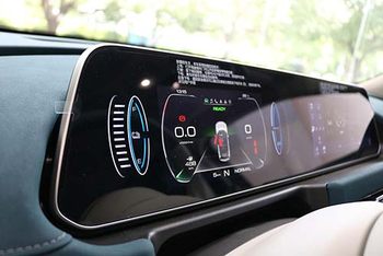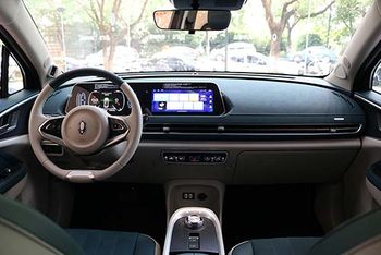 欧拉好猫莫兰迪版的中控大屏和液晶仪表是贯穿式设计, 7英寸的全液晶仪表盘的显示效果非常细腻,且在功能性上也比较全面,可显示续航、车辆电压、功率导航、智能辅助驾驶等信息均可在仪表中获取。
