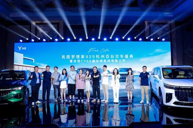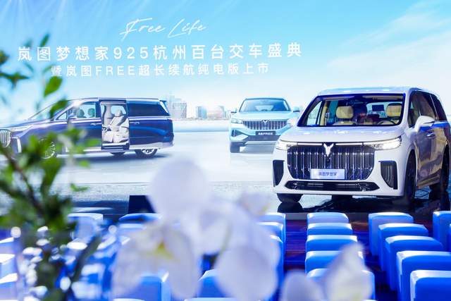 活动现场,除百台岚图梦想家七座版的交付外,岚图FREE超长续航纯电版、岚图FREE DNA首度亮相杭州,并携岚图梦想家四座定制版、岚图FREE标准版同台亮相。岚图以强大的产品矩阵,为用户带来全新的高端新能源产品体验。