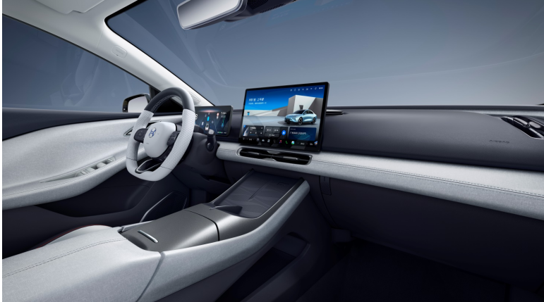 A06的流畅车身和超低风阻并不是以牺牲车内空间为代价。4965mm的车长和2850mm超长轴距,使合创A06车内纵向和垂向空间可分别扩展至1841mm和1243mm,即使是后排乘客也能拥有舒适坐姿。再搭配1.7㎡低辐射全景天幕,配色简约的一体式运动座椅,整个车内空间视野辽阔,休憩放松尽享舒适。自研车机系统HI-OS,搭载强大算力的高通8155芯片,让车内语音助手小智拥有行业领先的毫秒级响应,更有唇动识别、视线唤醒等感知黑科技,为座舱体验充满惊喜。