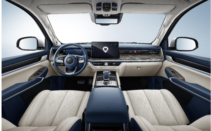 山海炮车身采用宽体豪华设计,乘用姿态比例更加协调而宽适,5440mm*1991mm*1924mm的超大车身,以及3350mm超长轴距,确保宽敞阔绰的驾乘空间。打开车门,高级商务座舱豪华气场,扑面而来。山海炮内饰大面积采用软质包覆,配备方向盘加热功能,以及14.6寸中控屏、12.3寸仪表,实现视觉、触觉双重豪华体验。