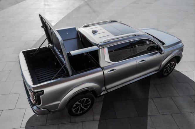 山海炮后车箱采取国内首创三开门平盖式防雨棚,电动控制,可拆卸隔断,增加空间百变性,玩转全场景皮卡生活。