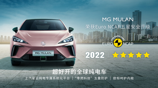 与安全感、高品质生活一路同行,MG MULAN以全球标准打造全球品质,在成人保护、儿童保护、行人保护、安全辅助系统四个维度均表现出色,获得Euro NCAP五星安全评级,实现了全员全域的有效安全防护。在消费者最为关心的电池安全方面,MG MULAN构建了“预、导、卧、隔、疏”零燃科技五重递进式防护体系,安全护航用户出行生活。MG MULAN还充分考虑到驾乘人员的健康以及环境安全,引入全球最严苛的环保标准,通过REACH、E-MARK等认证,打造欧标呵护内舱,甲醛含量低于国家标准6倍,让用户在车内的每一次呼吸都放心舒适。