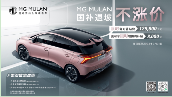国补退坡不涨价,MG MULAN限时官方补贴价129800元起