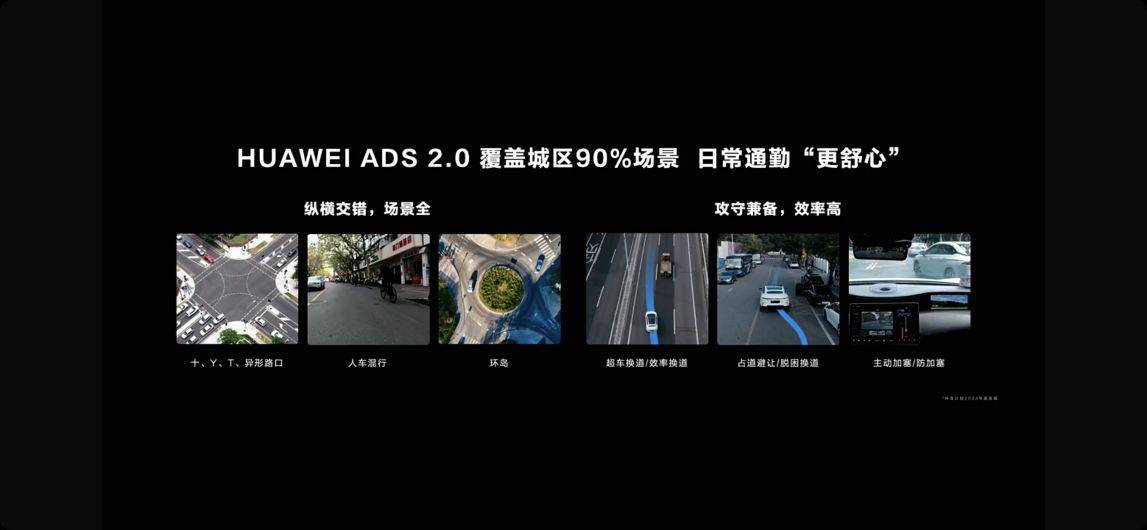 - 高速NCA功能,将进一步提升上下匝道、避障、施工修路等场景能力,使得平均人工接管里程从HUAWEI ADS 1.0的100km提升到200km。