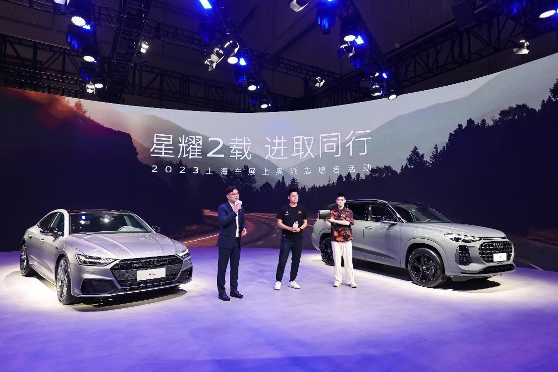 2023年4月19日,上海–2023年上海国际车展上,上汽奥迪迎来2周年品牌纪念日。近40位车主莅临展台现场,一场由品牌和车主共创的庆祝活动就此展开。上汽奥迪营销事业总经理杨嗣耀和高德乐(Thorsten Godulla)参与其中,与车主们就产品感受、用户体验积极互动交流。