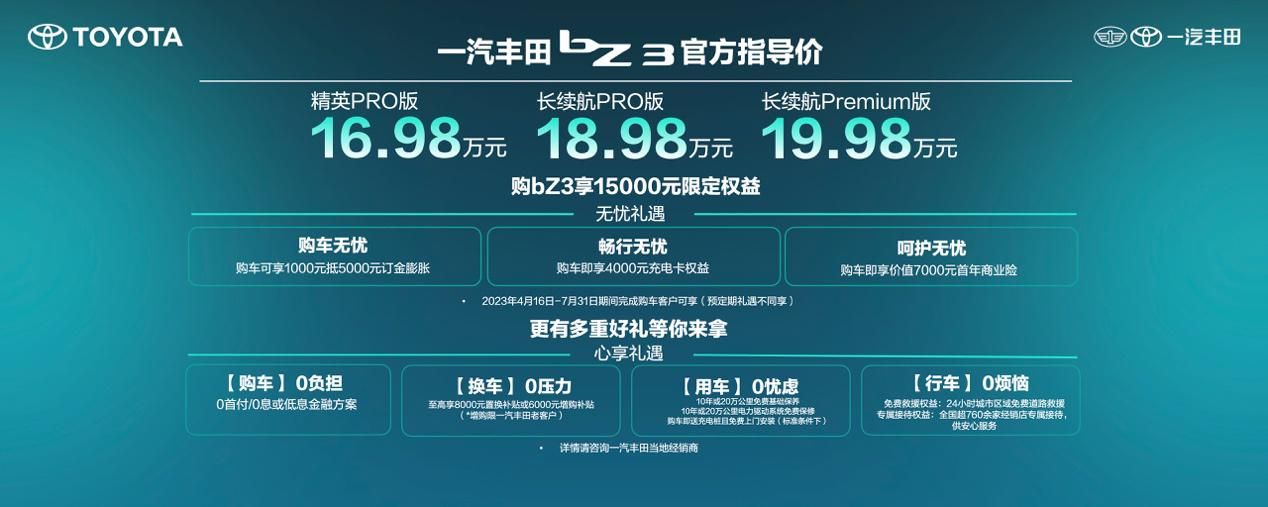 一汽丰田凭借专业的销售团队、服务团队,随时响应用户需求,全国 760余家经验丰富的经销商门店,将为用户提供最便捷、最优质、最安心的服务。未来,bZ3还将带来更多惊喜,不负广大用户期待,有兴趣的朋友不妨前往一汽丰田经销店,亲自感受bZ3的别样魅力。