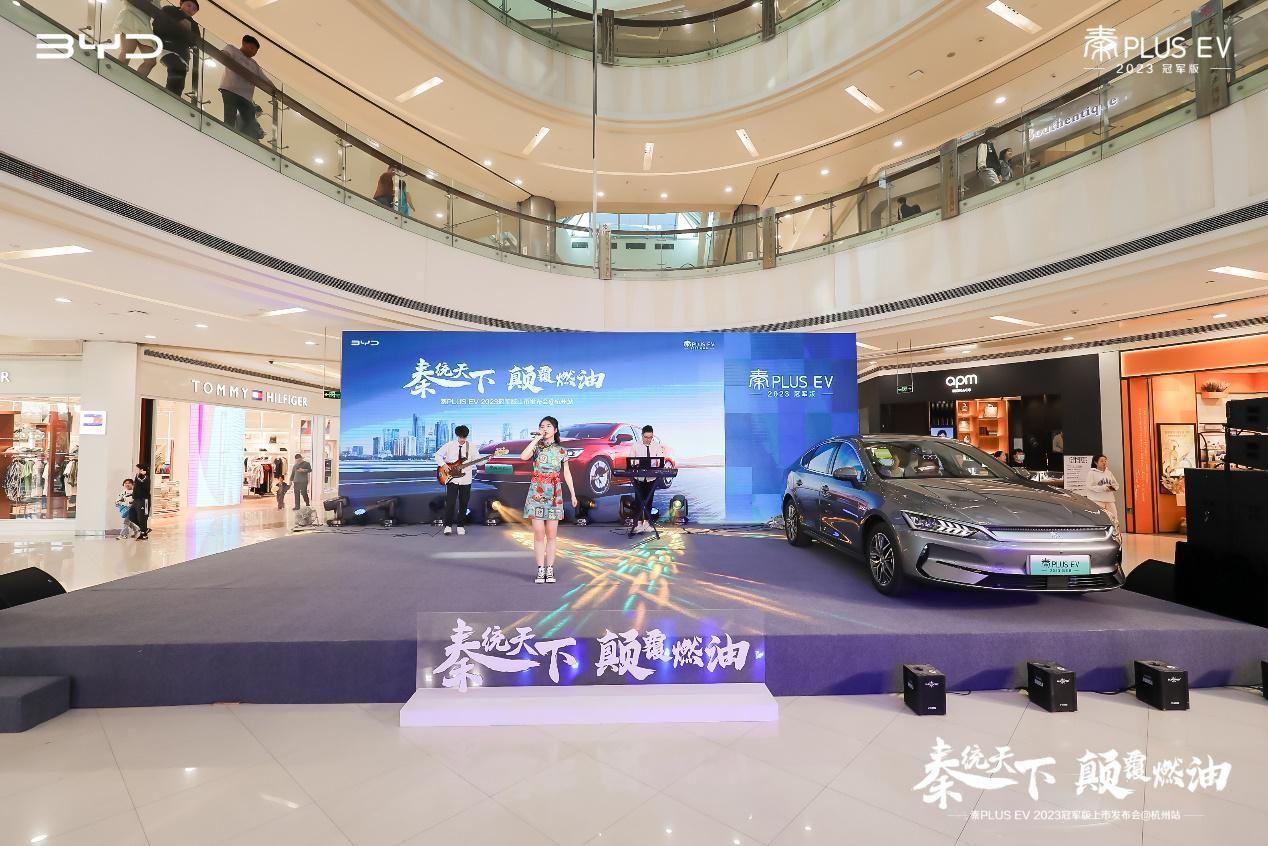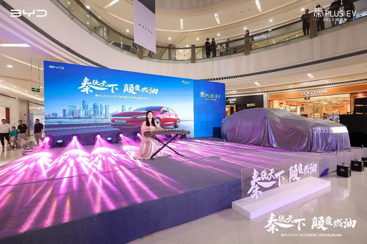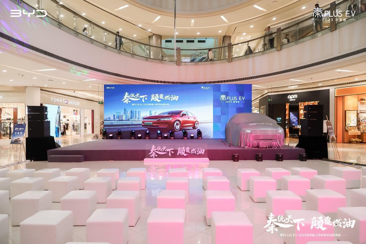4月22日,秦统天下 颠覆燃油—秦PLUS EV 2023冠军版杭州站圆满落幕!比亚迪特别邀请杭州地区众多汽车领域的媒体人与秦PLUS EV 2023冠军版的首批订购的车主们齐聚活动现场,共同见证强“秦”的颠覆实力;该车型官方售价为:12.98万-17.68万元。