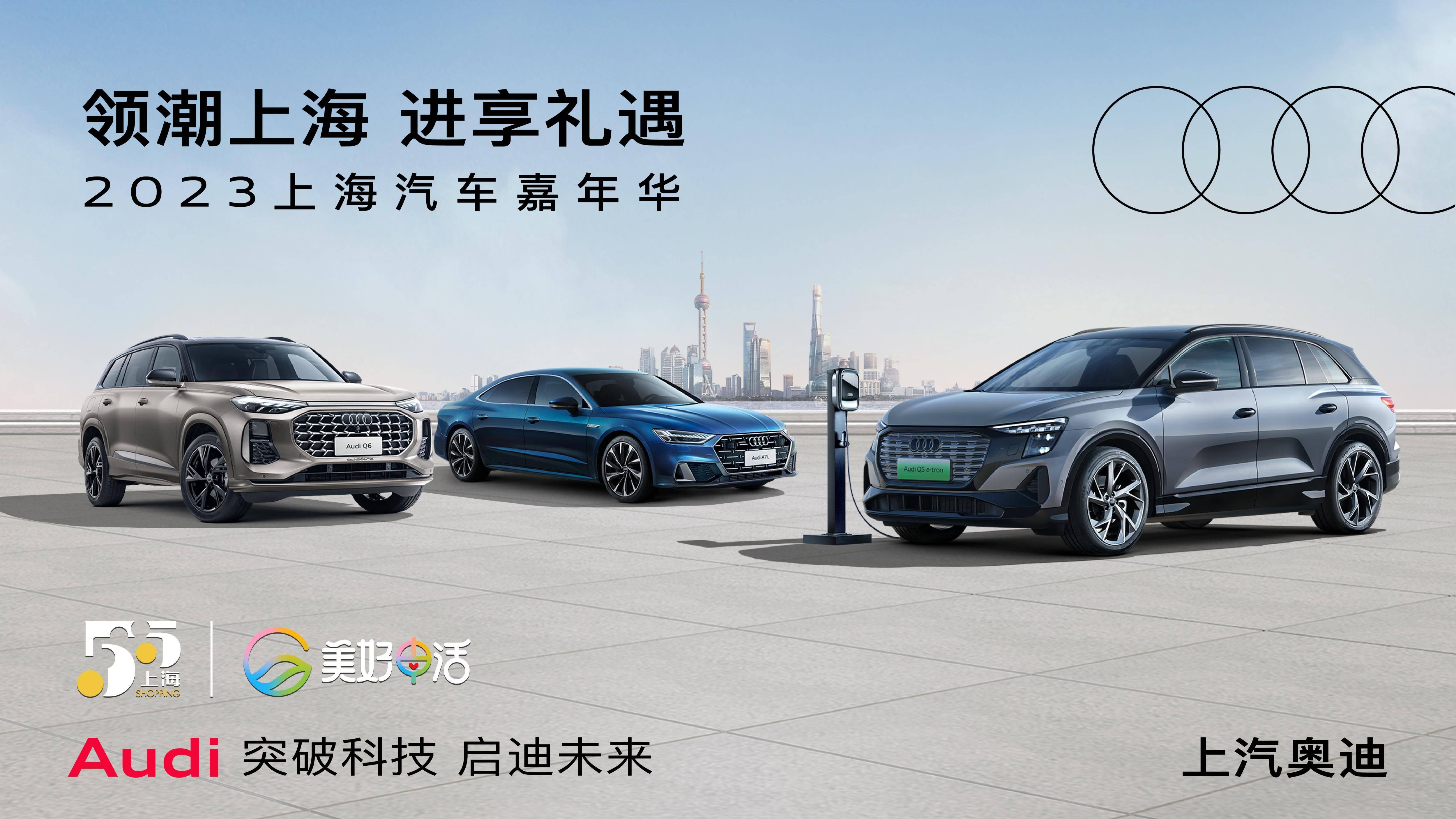 2023年5月4日,上海–为进一步提升消费氛围,激发消费潜力,第四届上海“五五购物节”近日正式启幕。上汽奥迪积极响应号召,携旗下全系车型——奥迪A7L、奥迪Q5 e-tron以及奥迪Q6一同参与“2023上海汽车嘉年华”。为了让更多消费者能进一步感受未来高端出行的魅力,上汽奥迪将带来一系列限时专享活动,回馈消费者对品牌的期待。