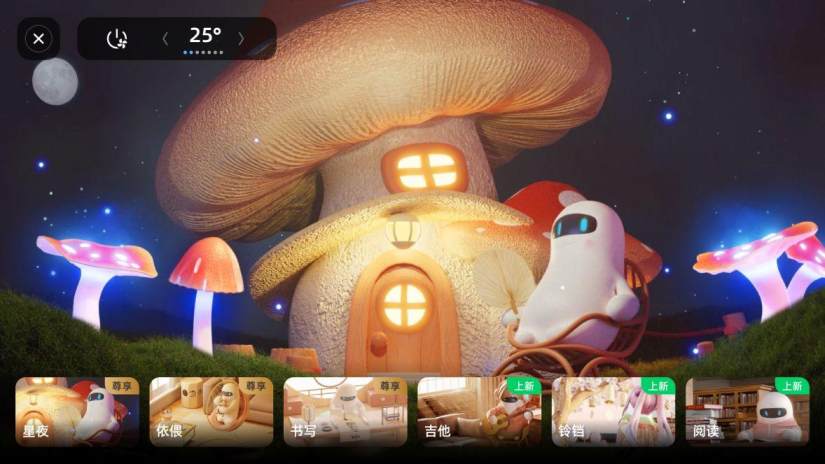 新增冥想模式下的吉他、铃铛、阅读三个场景,开启冥想模式后,三联屏联动播放音视频,加之多种环境音效,渲染不同情绪下的氛围空间。同时还优化小憩模式,闹铃音源增加小憩场景白噪音,可舒缓情绪,放松心情。