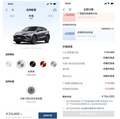 广汽丰田将用户利益放在第一位,通过官方丰云行APP提供公开、透明的价格体系,价格一目了然,线上轻松下单,下订可立享优惠,为消费者带来更为便捷、公平、安心、透明的购车新体验。