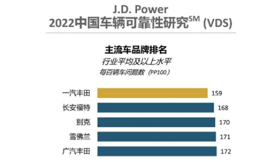 有汽车届奥斯卡奖之称的J.D. Power。在2022中国车辆可靠性研究(VDS)中,对豪华品牌、主流品牌以及自主品牌分别进行了排名统计。其中,一汽丰田以超越平均标准两位数的硬核实力在一众车企中脱颖而出位居主流品牌第一。