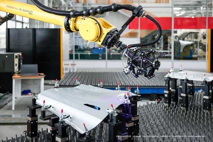 冲压工艺:采用智能柔性检测系统,其设计精度要求正负0.5mm,比行业水平正负1mm更为精确,能够高度还原造型设计。该系统具有高度智能化,管理系统集成了生产、质量、设备、监控等多种功能,使用蓝光扫描光学设备对冲压关键零部件进行实时检测,并实时进行大数据分析,在保证单件平均精度达到98%的基础上,能够自动预警异常情况。该系统的还原度达到95%,领先行业5%。