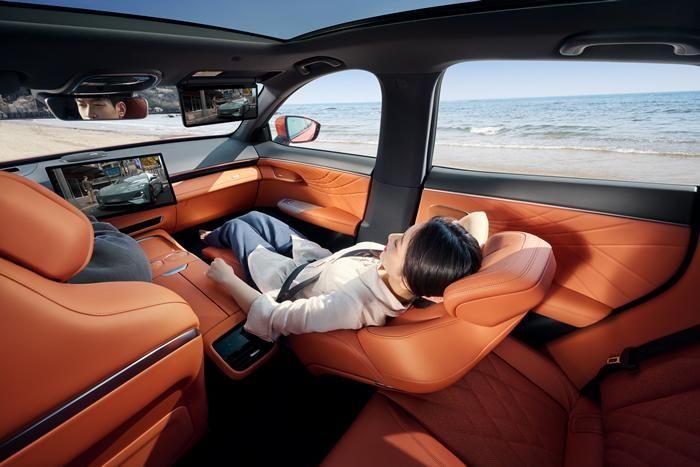 值得一提卖点是:这款车的前排双零重力按摩座椅是其重要的卖点之一,为乘客提供了身心恢复的移动补能空间。零重力座椅的结构设计能够让身体的重力均匀分担在座椅的不同部位,从而创造出太空舱般的体验感。座椅配备了4向电动腿托、主驾16向、副驾14向电动调节和8点式按摩功能,达到了顶级的座椅舒适性设计。一键零重力变换用户体验细节设计非常精致,从座椅向后调至最后到座椅整体翻转15度,再到腿托延伸,一键操作即可完成,极其便捷。座椅还有零重力防夹功能,能够在后排处挤压达到一定力度时,立即开启放夹保护。座椅符合国人95%的身体特征需求,可以自定义调节并记忆。