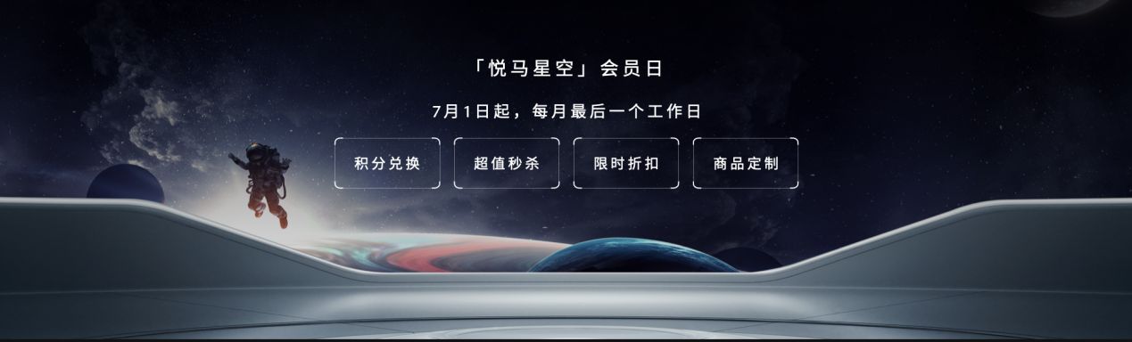 自2020年底上线以来,「悦马星空」小程序和APP相继落地,2023累计注册会员数量已突破170万人!7月1日起,长安马自达将在「悦马星空」APP正式开启“悦马星空会员日”活动,每月最后一个工作日,会员用户可用积分兑换超值福利;「悦马星空」商城也将不定时推出“秒杀”福利和限时折扣。此外,用户还可在平台开启商品定制众筹,只要达到最低起订量即可定制专属商品。