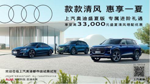 凭借自由的空间体验、丰富的舒适配置、优越的行李装载功能以及旗舰级的智能安全,奥迪Q6成为了一个充满欢乐的移动空间,装点着家庭仲夏出游的精彩。日前,上汽奥迪积极焕新营销政策,携奥迪Q6盛夏版款款而来。购买齐云型的消费者可立享16项功能的盛夏清风套装权益。6月30日起至7月31日,消费者可登录上汽奥迪App了解更多信息。值得一提的是,上汽奥迪旗下三款车型分别为用户提供了包含多重配置的盛夏清风套装,只为款待特别的你。