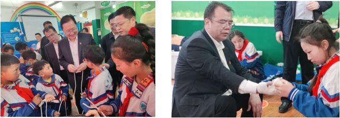 < 学生现场展示逃生绳索打结方式> <学生展示包扎止血方式>