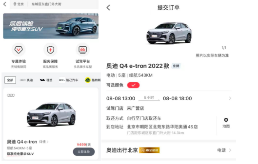 悟空租车将联合奥迪出行,打造【深度试驾】第一期活动,推出以纯电豪华SUV奥迪Q4 e-tron为主打的奥迪新能源汽车,三天深度试驾体验,限时专属购车优惠,上门送取车等贴心高品质服务。