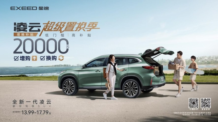 有车就补,实惠靠谱!为回馈广大用户的支持和信赖,豪华驾享SUV——全新一代凌云在黄金九月开启超级置换季,9月1日至9月30日活动期间,置换、增购全新一代星途凌云可享受20000元补贴,为广大车主奉上实实在在的购车优惠。