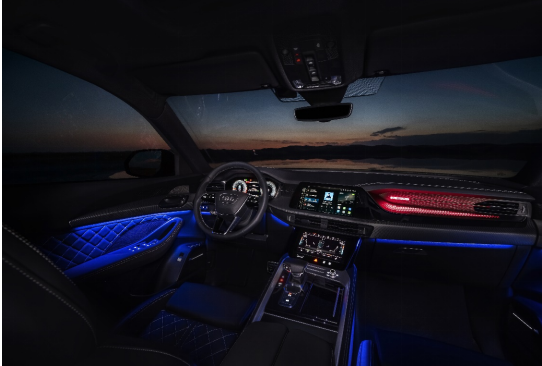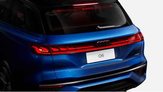 上汽奥迪Q6还将奥迪标志性的“贯穿式LED灯光系统”进行了全新升级。前贯穿式LED灯首次在奥迪车型上进行使用,明眸闪耀;车辆尾部的贯穿式 LED 尾灯更融入了动态灯光效果,与前贯穿式头灯相互呼应,为用户呈现感官充分交融的科技美学体验。另外,奥迪Q6还融合了智能矩阵全可变技术、DLA 智能远光灯、AFS 智能随动转向3大照明技术,将豪华感与科技感淋漓绽放。更值得一提的是,奥迪Q6还是奥迪全球量产车中首次搭载后尾翼quattro投影式刹车灯的车型,“quattro”字样的红色光影悬浮于后尾窗上,以更具特色的高位刹车灯视觉效果起到了醒目的警示作用。