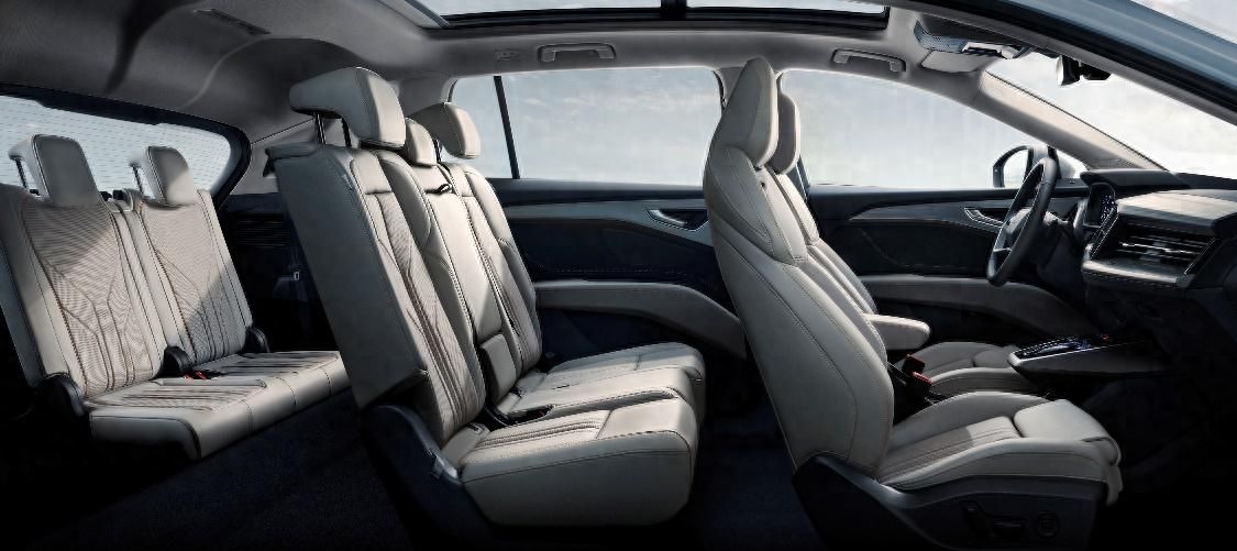 上车奥迪Q5 e-tron,舒适宽敞的内部空间和真三排座椅已为车型定下了舒适的家用属性。得益于“巧克力”式排布的MEB纯电平台,上汽奥迪Q5 e-tron内部地板整体平整,最大比例依托超长轴距做到“表里如一”的宽敞,打造出三排乘客都共享同乐的舒适惬意。无论选择哪一排,每个家庭成员都能在自己的舒适区上,优雅欣赏沿途风光。长途出行时老人和小孩习惯在车上小憩,一个静谧的座舱空间的必要性就此凸显了。相比大多数SUV车型Cd0.35的风阻系数,Q5 e-tron凭借出色的动力学表现做到了风阻系数仅Cd 0.29,有助减少噪音污染和提升续航;同时前挡风玻璃和侧窗都由标准隔音玻璃制造,整个车身大量采用隔音材料,即使行驶在高速公路上也让耳朵免于风噪干扰。