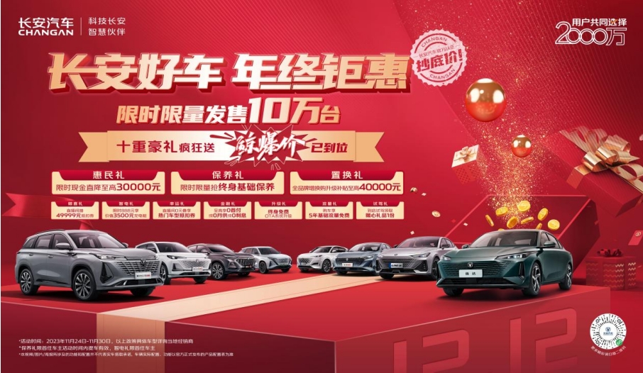 年终盛典,火力全开!长安汽车力争自主品牌销冠王,再发大招!11月24日-11月30日,长安汽车针对旗下六大热门车系,推出「长安好车 年终钜惠」促销活动,诚意奉献广大消费者,更有王牌产品现金直降和惊喜福利大放送,钜惠享不停!