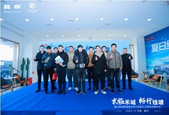 12月22日,“京临禾城 畅行钱塘 嘉兴京桔新能源北京汽车新EU5网约车推介会”活动在魅力嘉兴绿环北京汽车4S店成功举办。现场京桔新能源、嘉兴京桔新能源、北京汽车、嘉兴绿环新能源汽车有限公司的领导,以及当地几十位网约车驾驶员共同出席了本次活动。