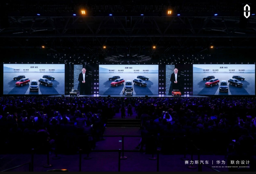 问界M9是赛力斯汽车与华为联合设计、深度赋能的集大成之作,是AITO问界迄今为止规格级别最高的巅峰产品,将以旗舰之姿撼动既有格局。发布会现场,华为常务董事、终端BG CEO、智能汽车解决方案BU CEO余承东表示:“问界M9将重新定义1000万元内最好的智能旗舰SUV,为用户带来领先不止一代的极致新体验。”赛力斯汽车总裁何利扬则表示:“赛力斯汽车正在快速提高产能,将会尽一切努力,让喜爱问界M9的用户,尽快体验到1000万以内,最好SUV的强大魅力。”
