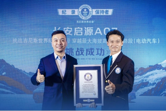 1月3日,长安启源挑战赛——挑战吉尼斯最高海拔差颁奖仪式圆满完成。长安启源A07成功完成了一项前所未有的挑战,以“5720.019米”的最高海拔差成绩,创造了吉尼斯世界纪录,再次彰显“地表最强新能源”硬核实力。此次挑战赛从“世界内陆最低处”——新疆吐鲁番艾丁湖出发,全程3151km,历时10天9夜,最终抵达中国海拔最高的公路垭口——西藏桑木拉达坂,圆满完成了挑战任务。这是长安启源A07的荣耀时刻,更是长安启源挑战赛的历史一刻!