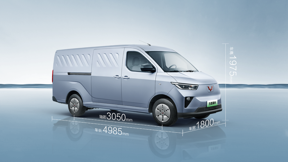 五菱扬光整车车身尺寸为4985*1800*1975mm,轴距3050mm,采用全新一代新能源商用车设计语言,彰显出动感科技气息。新车车头采用乘用化设计,搭配方正硬朗的造型营造出动感姿态,同级唯一配置LED大灯与雾灯,灯光照射宽度领先同级产品30%以上。