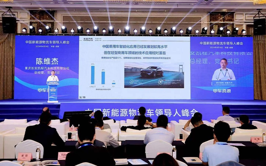 作为新能源商用车领域的领军企业,长安凯程在此次盛会上备受瞩目。长安凯程总经理、党委书记陈维杰亲临现场并发表以“新智技术驱动物流生态革新——效率为本,生态共赢”为主题的精彩演讲。他深刻剖析了当前新能源商用车市场的现状,分享了长安凯程对轻型商用车新能源数智化探索与实践。他强调,长安凯程将更加坚定新能源、数智化的快速转型,以用户需求为导向,坚持以科技创新培育新质生产力,助力中国新能源汽车事业蓬勃发展。