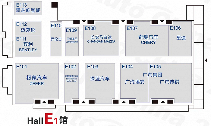 E1馆极氪、长安深蓝、奇瑞宾利、广汽。极氪MIX、极氪009光辉版是主要看点。