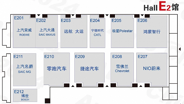 E2馆:蔚来、零跑汽车、鸿蒙智行、上汽、宁德时代蔚来新款ET7、零跑C16、问界M5、享界S9是主要看点。