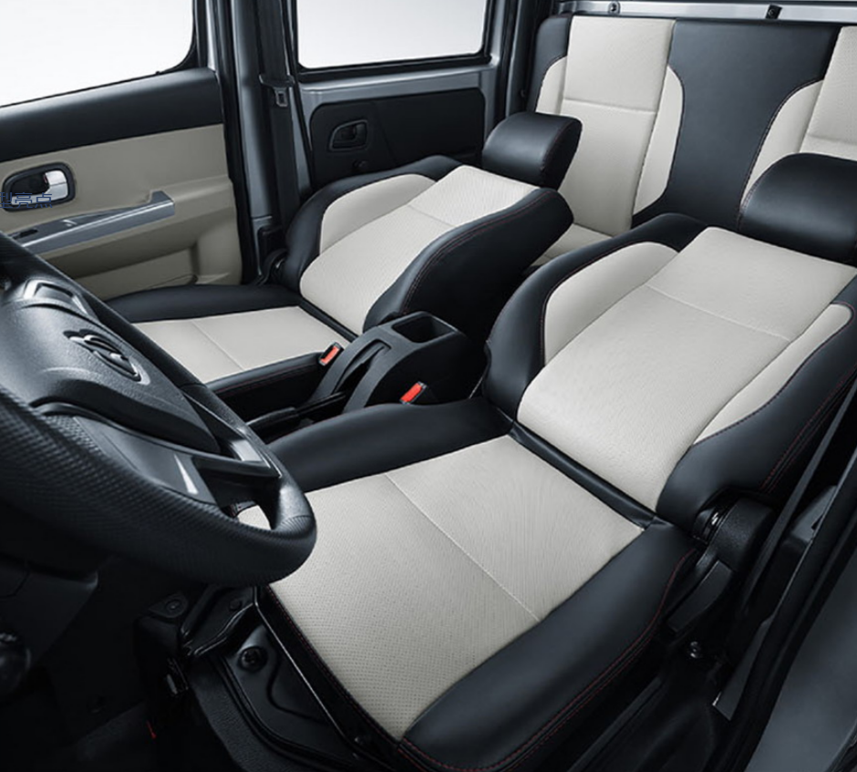 除了性能上的卓越表现,新长安星卡的外观设计也紧跟时代潮流。满天星造型的前格栅搭配时尚大灯和雾灯,展现出年轻时尚的气息。内饰设计同样考究,上深灰下米白的配色让中控台显得层次丰富,在座椅设计上,新长安星卡座椅有织物、仿皮两种材质,仿皮座椅采用黑色+米色拼色设计,主驾驶座椅可以前后滑动、调节靠背角度,满足个性化舒适度需求,双排前排座椅可放平,方便驾驶员休息,后排座椅可翻折,空间灵活更实用。