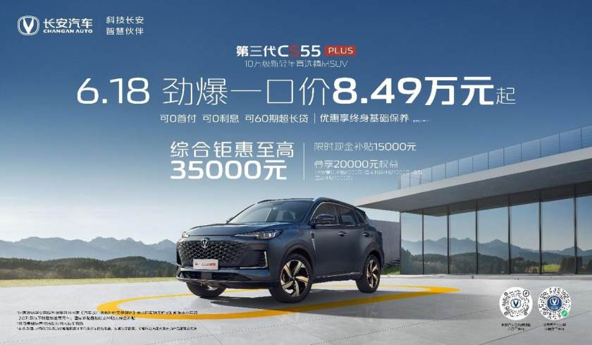 10万级家用精品SUV,第三代CS55PLUS劲爆一口价8.49万元起