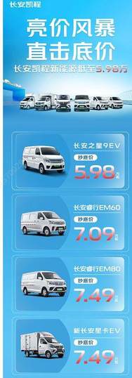 在市场竞争越来越激烈的背景下,长安凯程顺势而为,主动拥抱变化,在卷产品的同时,也卷起了价格。长安睿行EM60抄底价7.09万元起,长安睿行EM80抄底价7.49万元起,让更多用户享受到长安凯程的高品质产品。