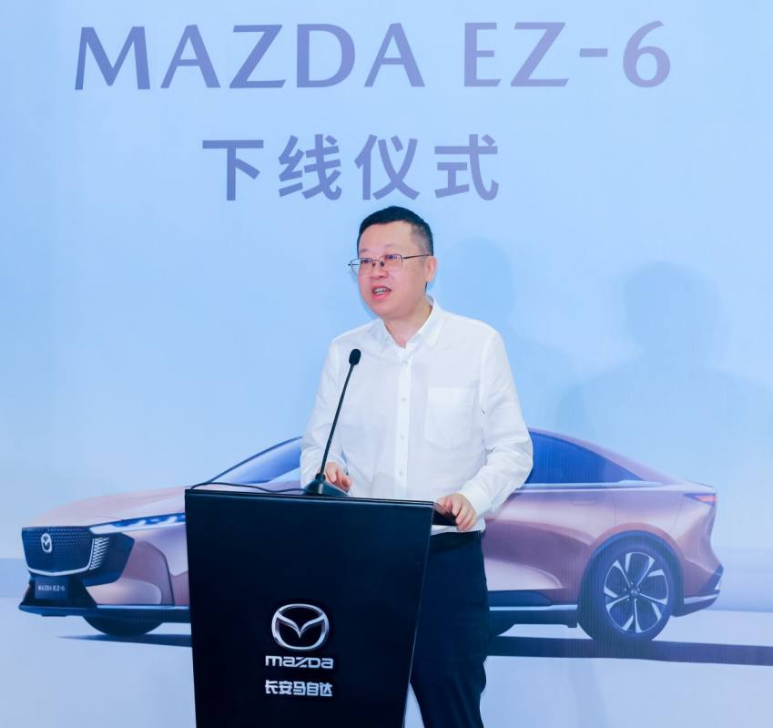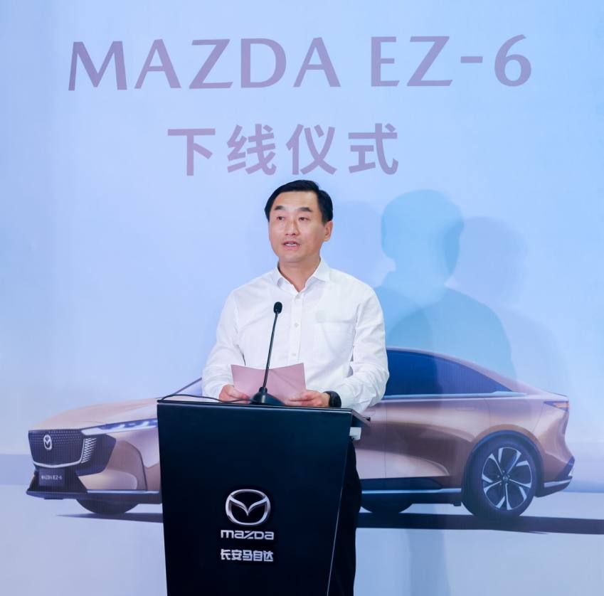 7月17日,长安马自达首款基于纯电平台的B级轿车——MAZDA EZ-6(以下称EZ-6)在南京工厂迎来下线。南京市市长陈之常,南京市委常委、江宁区区委书记林涛以及南京市、江宁区等有关领导,长安汽车总裁王俊,马自达汽车株式会社常务执行董事、马自达(中国)董事长中岛徹出席本次新车下线仪式,并共同见证了长安马自达新能源汽车合作项目的签约落地。