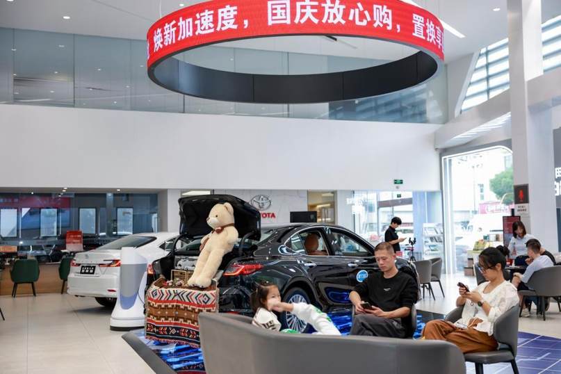 整个绍兴路汽车文化精品街,一派车水马龙。街道两旁的奔驰、宝马、奥迪、凯迪拉克、一汽大众、上汽大众、广汽丰田、别克、问界、昊铂、坦克、比亚迪等汽车4S店,赏车、购车的人流,络绎不绝。有三口之家,有年轻的情侣或者小夫妻,还有三代同堂,大家似乎都希望在国庆假期,能够看中或者买下自己心怡的爱车。这也使整个绍兴路汽车文化精品街,变得更热闹,更喜庆。