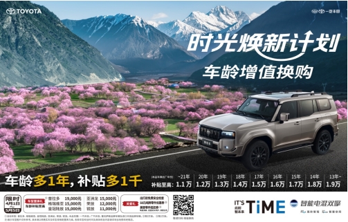 3月,一汽丰田推出行业首创的“时光焕新计划”,以“车龄增值补贴”机制为核心,基础补贴之上随车龄每年递增1000元,再叠加国家补贴形成多重用户福利。例如,13年丰田用户置换皇冠陆放可享受15000元国补与15000元厂补,充分释放存量资产价值,将“长期价值主义”理念转化为用户的实际利益。