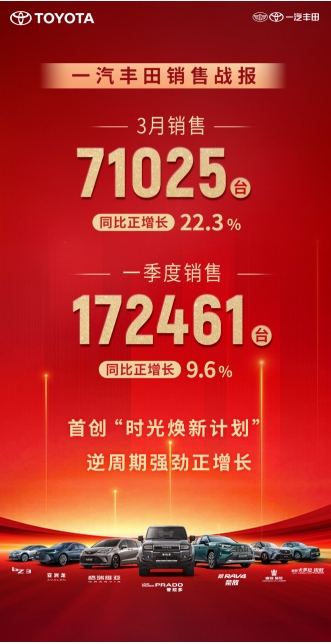 4月1日,一汽丰田率先公布了2025年一季度销售战报,累计销售新车172,461