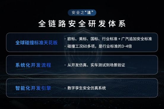 面向自动驾驶时代,广汽打造了包括智能驾驶安全、智能底盘安全、主被动融合安全及电池安全在内的全域安全技术。